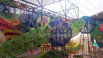 Теперь у нас есть новый проект Коплексные красочные сети, они состоят из множества различных видовплетённых аттракционов. Таких как: сотовые сети, радужные батуты, веревочные ульи, радужное дерво и др. Необычный внешний вид и конструкция, яркий дизайн и потрясающие игровые возможности – это то, за что так любят этот вид относительно нового игрового оборудования. Такой аттракцион идеально подходит для установки в трц, гипермаркетах, фитнес центрах, кафе и других помещениях.