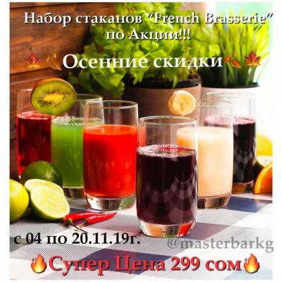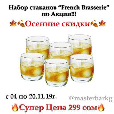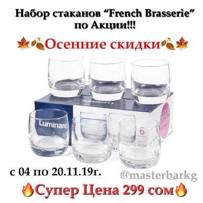 Наборы стаканов French Brasserie от французского бренда Luminarc по Акции!!! В каждом наборе по 6 стаканов: ВСЕГО за 299 сом!!