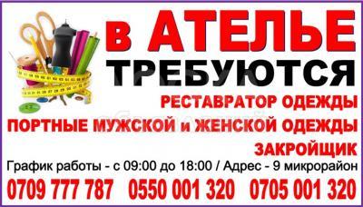 Требуется в Ателье реставратор одежды и портные женской и мужской одежды. Закройщик.