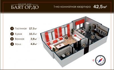 Продаю 1-комнатную квартиру, 42,5кв. м., этаж - 3/5, Молодая Гвардия-Васильева 248.