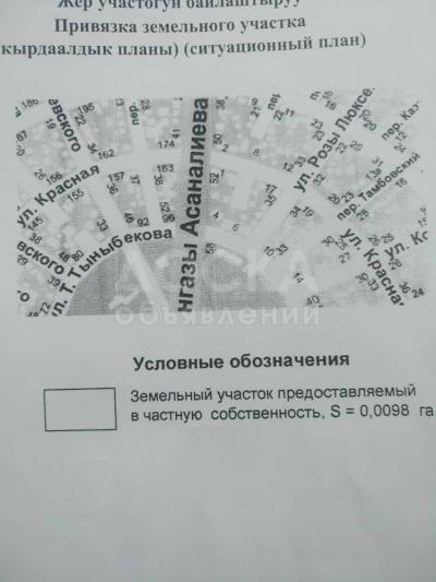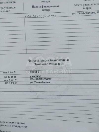 Продаю участок под строительство, 1 соток Тыналиева 6а.