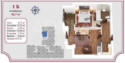 Продаю 1-комнатную квартиру, 56кв. м., этаж - 7/10, Старый аэропорт.