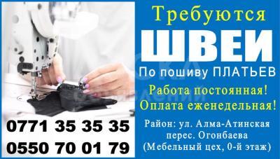 Требуются швеи (платья), район Алма-Атинская/Огонбаева