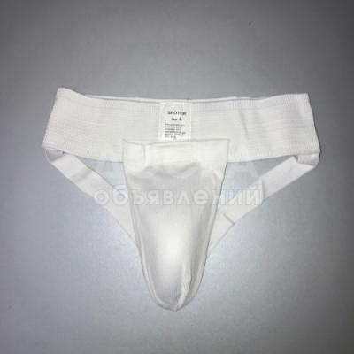 Глубокая защита паха с заменяемой чашей из твердого пластика.