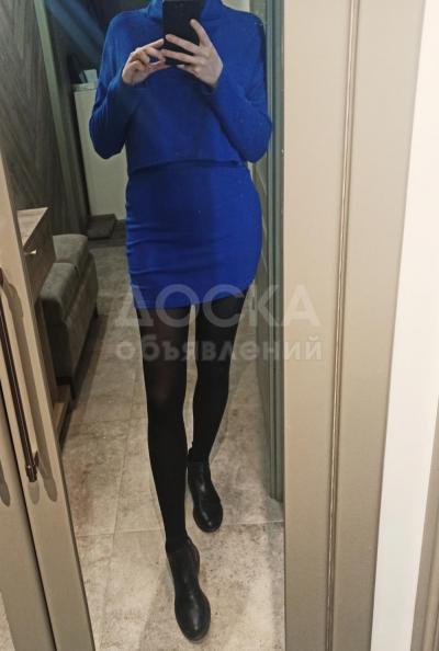 Трикотажный костюм-двойка,цвет ультрамарин. Новый! На невысоких девочек.