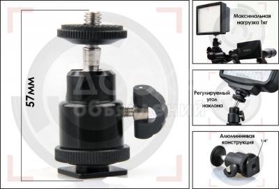 Позволяет устанавливать дополнительное оборудование, например: LED видеосвет, накамерные мониторы, микрофоны и т.д. на риги, камеру, кран и т.д. На одном конце имеет стандартное крепление (винт) 1/4'', на другом - площадка для установки в горячий башмак и резьба 1/4''.