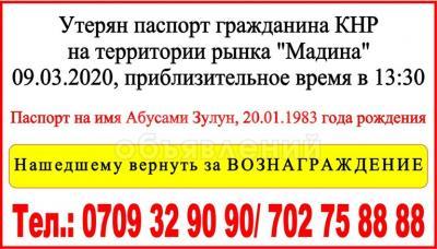 Утерян паспорт гражданина КНР