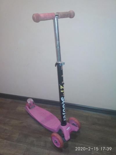 Самокаты в отличном состоянии. Большой розовый до 60 кг 750 с.,зелёный чуть поменьше 650 с. Велосипед 1100