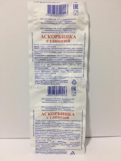 5. Аскорбиновая кислота с глюкозой – 10 таблеток