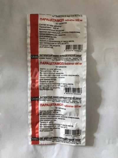 6. Парацетамол 500 мг – 10 таблеток.