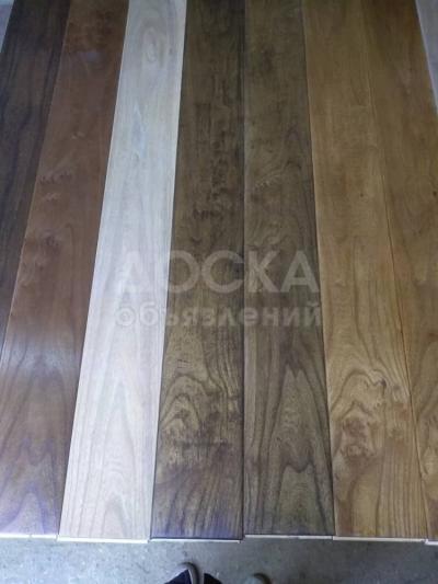Размеры 800 х 12.5 х 15 и второй размер 630 х12.5 х 15 в одной упаковке 0.9 квадрат. Покрытие лак или масло Италия по желанию заказчика. Карагач,корень карагача, орех,клён,платан,ясень.