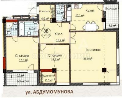Продаю 3-комнатную квартиру, 123кв. м., этаж - 2/10, Уметалиева 124/Абдымомомунова.