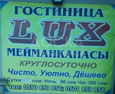 Гостиница "Люкс" в г. Кант. Центр. Все чистое , белоснежное всегда свежее белье. Номера не прокурены и курить запрещено. Все номера оснащены современнои мебелью. цены от 300 сом до 1200 сом. Часовая два часа 400 сом.