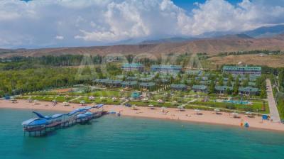 Карвэн "Иссык-Куль" – этот небольшой по площади красивейший городок с уютными домиками, ухоженными травяными газонами, цветниками и розариями - славится своим песчаным благоустроенным пляжем, имеющим идеальный заход в озеро.