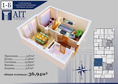 Продаю 1-комнатную квартиру, 37кв. м., этаж - 5/7, мкр. Тунгуч (АюГранд).