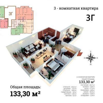 Продаётся 3-х комнатная квартира с площадью 132 м2 в ЖК "Дипломат".