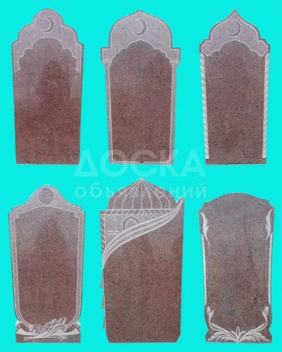 Габро, гранит, мрамор, мраморная крошка, травертин (Сары-Таш). В стоимость памятника входит тумба, стелла, портрет + основная надпись (ФИО, дата рождения и дата смерти). Возможна дополнительная надпись, которая оговаривается отдельно.