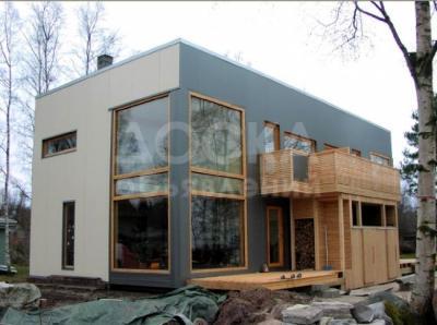 ОписаниеСэндвич-пане́ль — строительный материал, имеющий трёхслойную структуру, состоящую из двух листов жёсткого материала и слоя утеплителя между ними. Все детали сэндвич-панелей склеиваются между собой с помощью горячего или холодного прессования. В зависимости от назначения выделяются кровельные и стеновые панели.