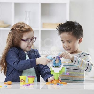Сумасшедший парикмахер понравится каждому ребенку, ведь дети так любят играть с волосами. Теперь малыш сможет не только делать сумасшедшие прически, но и накладывать фантастические бороды. Достаточно посадить героя в специальное кресло, покрутить ручку и выбрать один из удивительных образов. В набор входит герой-мальчик и герой-девочка, кресло, расческа, ножницы, бритва, электробритва и 5 баночек с массой для лепки.