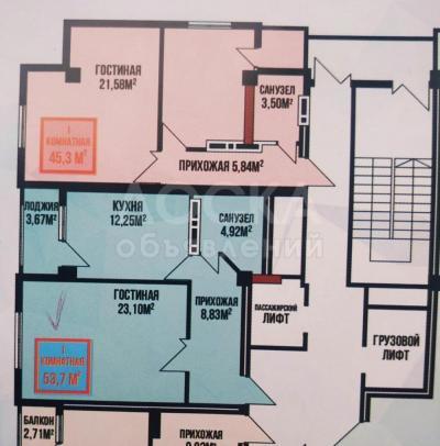 Площадь 53.7 м2 , на 9 этаже из 13