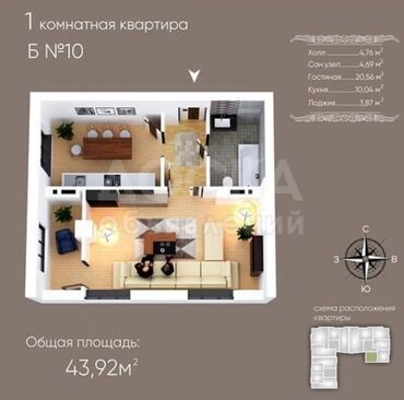 Продаю 1-комнатную квартиру, 45кв. м., этаж - 9/10, Калык Акиева Жумабек.
