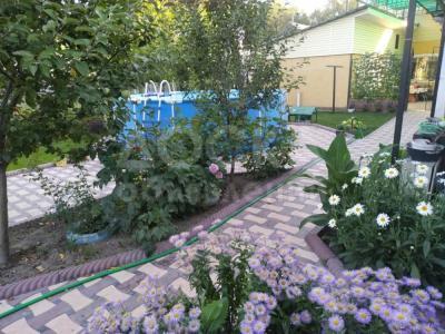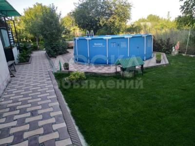 Огороженная и ухоженная территория. Молодой плодоносящий сад (саженцы покупались в спец. питомниках). Зона отдыха засажена цветами и газонами. Также имеется большой каркасный бассейн.