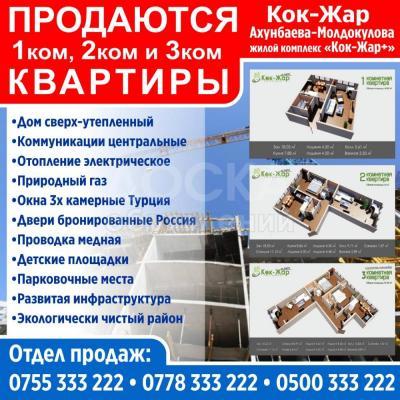 Продаю 3-комнатную квартиру, 81кв. м., этаж - 7/9, Кок-жар, ул.Ахунбаева/ ул. Молдокулова.