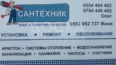 Сантехник ремонт,установка,обслуживание,Аристон установка,чистка,Системы отопления,Водоснабжение,Канализация,Санфаянс,Насосы,Счетчики Тел:0554 464 462,0704 440 462 Олег,0552 092 737