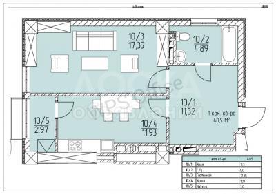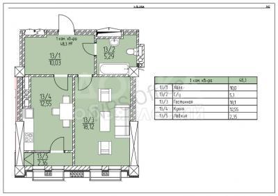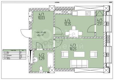 Продаю 1-комнатную квартиру, 44кв. м., этаж - 4/10, восток-5.