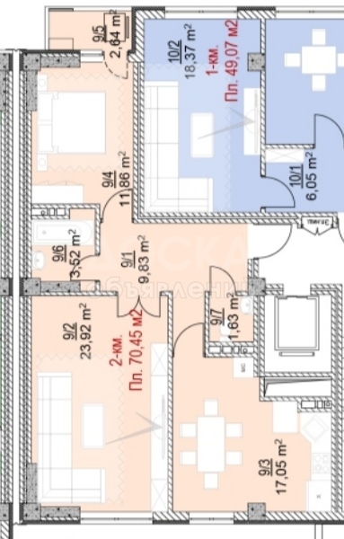 Общая площадь: S=71 м2