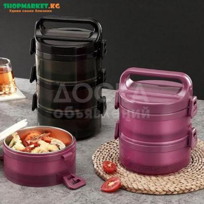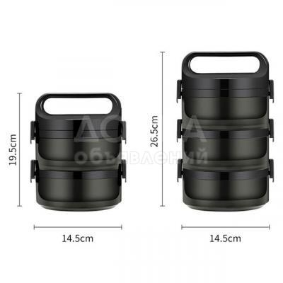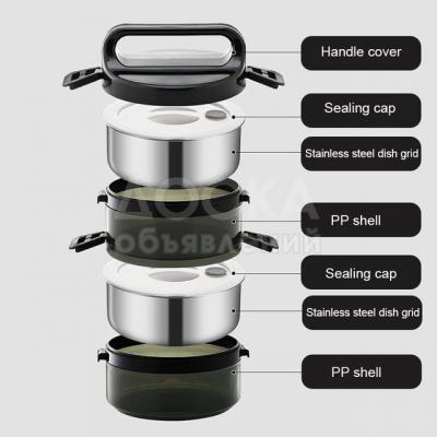 Термо ланч-бокс из нержавеющей стали - замечательное решение для людей, которые питаются вне дома или для пикника. Все лотки крепятся между собой на две защелки по бокам, для верхнего лотка есть термо - крышка с ручками и отверстием с силиконовой защелкой.