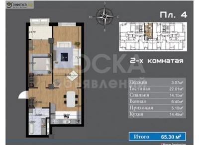 Общая площадь квартиры: 65 кв. м.