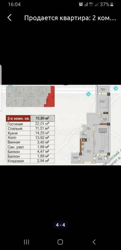 Продаю 2-комнатную квартиру, 79кв. м., этаж - 6/10, Токомбаева.