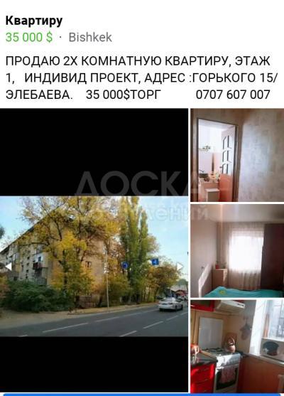 Продаю 2-комнатную квартиру, 43кв. м., этаж - 1/5, Горького15/ЭЛЕБАЕВА .