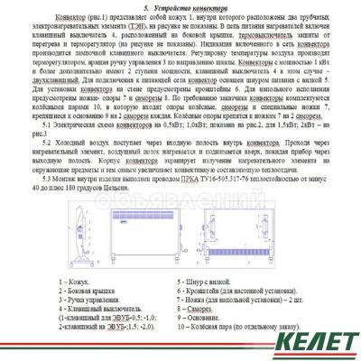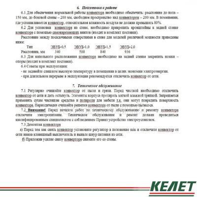 Электроконвекторы настенно-напольные ЭВУБ предназначены для обогрева комнат,офисов,дач и других помещений. Электроконвекторы ЭВУБ дополнительно оснащаются ножками для напольной установки. Конвектор представляет собой кожух,внутри которого расположены два оребренных трубчатых электронагревателя (ТЭНР) и терморегулятор для защиты от перегрева.С помощью терморегулятора имеется возможность плавного управления температурой. Холодный воздух поступает через нижние входные решетки внутрь конвектора.Проходя через нагревательные элементы,воздушный поток нагревается и поднимается вверх, покидая прибор через выходные верхние решетки. Корпус конвектора экранирует излучение нагревательных элементов на окружающие предметы и увеличивает конвективную составляющую теплоотдачи.