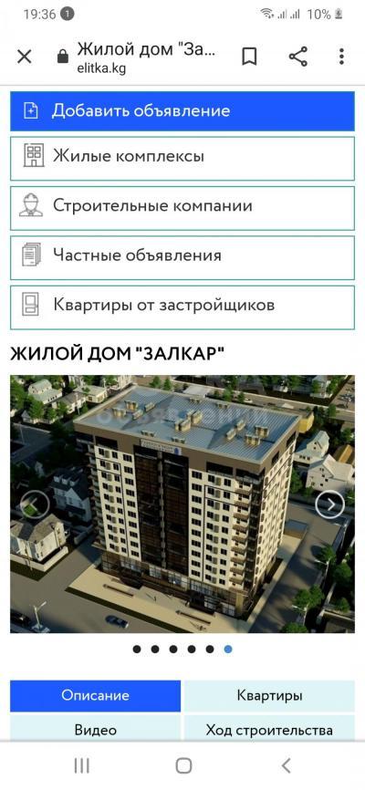 Продаю 1-комнатную квартиру, 54кв. м., этаж - 4/10, Ул Ахунбаева/Душанбинская построенная новостройка Залкар.
