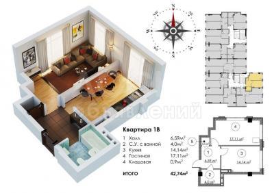 Продаю 1-комнатную квартиру, 42кв. м., этаж - 9/9, Аламедин 1.