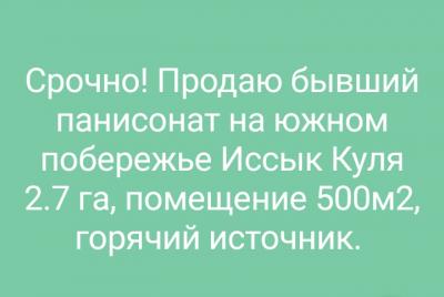 Срочно! Продаю бывший панисонат на южном побережье Иссык Куля 2.7 га, помещение 500м2, горячий источник. С.Кызыл Туу( Покровка) 320тыс.$ Варианты обмена 0700508208, 0559557655