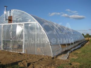 3. Боковые форточки с системой ручного свертывания, состоящей из алюминиевых профилей или из наматывающих трубок с пленочной натяжкой. Преимущество боковых открытий и в том , что можно отгружать готовую продукцию из любого места теплицы, а не только из дверных проёмов.