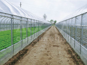 1.3. Покрытие крыши теплицы Покрытие крыши теплицы выполнено из двойной продутой плёнки длительного срока типа Pilux, плёнка термическая, антиконденсатная, толщина 200 микрон, фиксация плёнки производится при помощи специальных алюминиевых, в комплекте с прокладками из ПВХ как на фронтонах так и на боковых стенах. Для покрытия крыши теплицы двойной продутой плёнкой будут предоставлены соответствующие моторчики для надува.