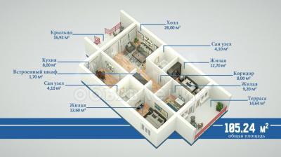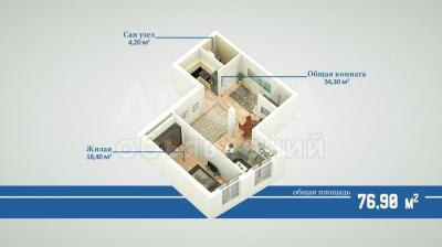 Продаю коттедж 3-ком. 77кв. м., этаж-1, 3-сот., стена другое, Кош-Кол, ЦО "РадугаВест".