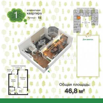 Продаю 1-комнатную квартиру, 47кв. м., этаж - 10/10, 5 мкр/н,по набережной 31500.