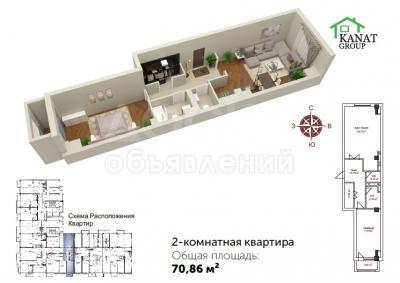 Продаю 1-комнатную квартиру, 50кв. м., этаж - 7/10, Уметалиева фрунзе.