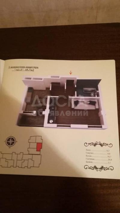 Продаю 1-комнатную квартиру, 46кв. м., этаж - 5/10, Уметалиева /Жумабека .