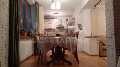 Квартира с пристройкой в 18 кв/м, общая площадь 76 кв, в пристройка размещена кухня-столовая, подогревается теплым полом, утепления, с большими панорамными окнами во двор, двор очень зеленый, ухоженный.