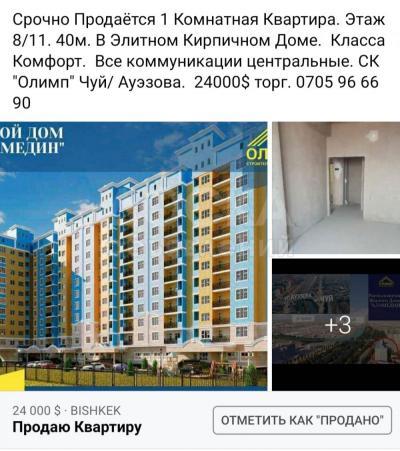 Срочно Продаётся 1 Комнатная Квартира в Элитном Кирпичном Доме Класса Комфорт. Этаж 8/11. 40м. СК Олимп Чуй Ауэзова. 24000$ 0705 96 66 90