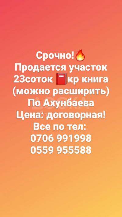 Продаю участок под строительство, 23 соток Ахунбаева .