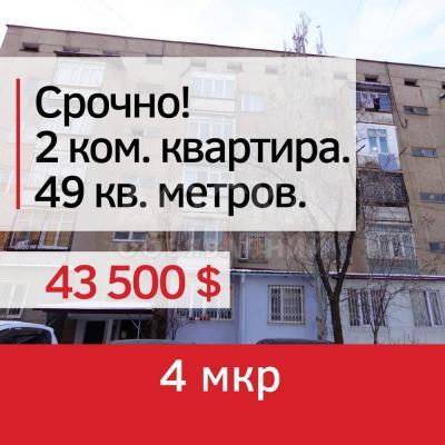Срочно продам! 2 к. кв. 4 мкр. инд. 3 этаж из 5, 49м2. 43,5т.$