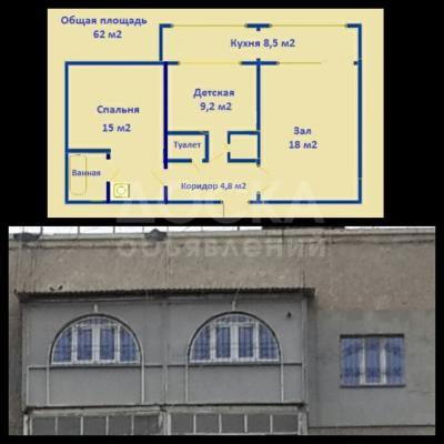 Продаю 2-комнатную квартиру, 61кв. м., этаж - 9/9, 6 мкр. Ореховая роща.