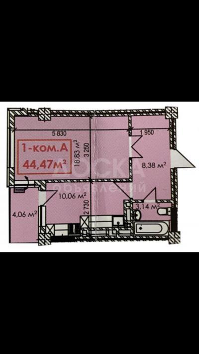 - 1-ком. кв, 44м2, 6-этаж из 12.